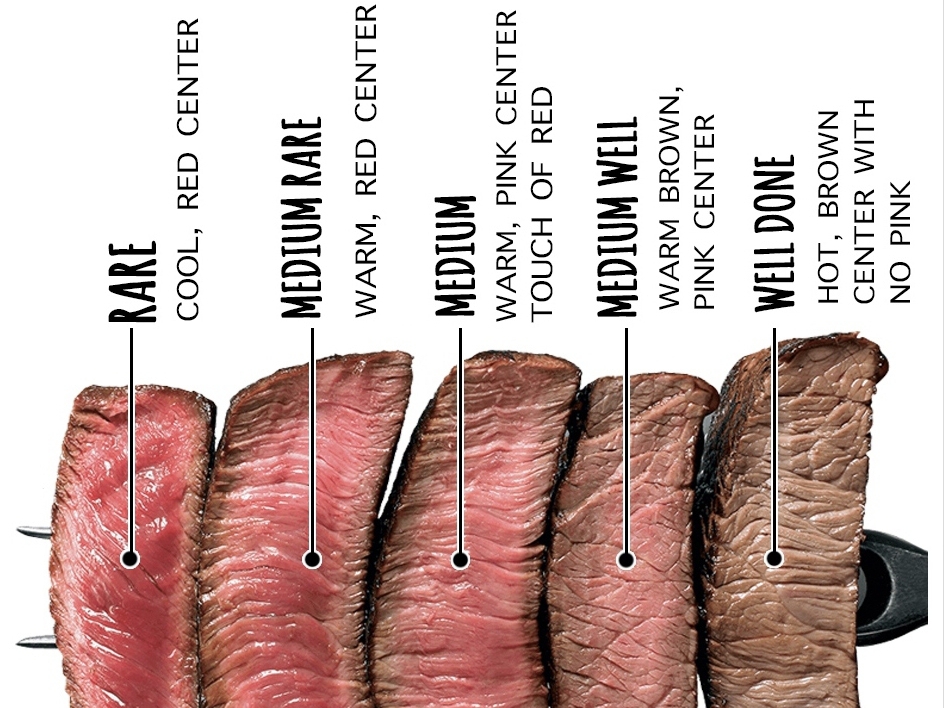 Etin içi oldukça yumuşak, ıslak ve pembe kalır. Bu pişirme derecesi bizde "orta az pişmiş" diye bilinir ve "midyum ree" diye okunur.