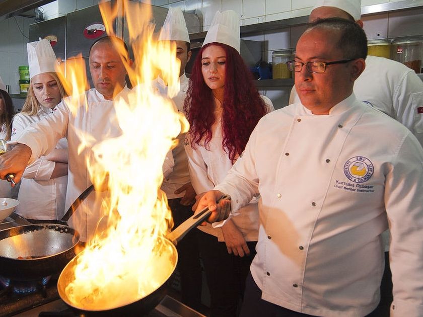 Gastronomi ve Mutfak Sanatları uygulama mutfağında sıradan bir gün. Benim gibi o taze fesleğen ve biberiye kokulu, endüstriyel mutfak aletlerinin adım başı olduğu güzel mutfaklarda eğitim alanlar “Hah! İşte tanıdık bir sahne.” diyor tam şu anda. Emin olun sizi çok iyi anlıyorum.